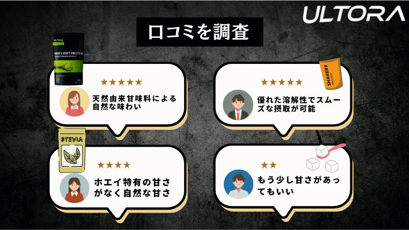 ULTORAホエイダイエットプロテインの口コミを味・溶けやすさ・成分の3つの観点から厳選して解説していきます。
