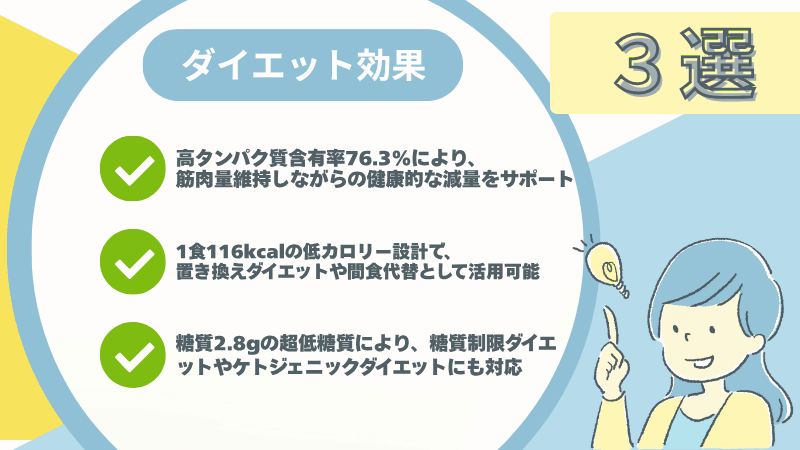 カロリーは1回分あたり116kcalと適度で、ダイエット中の方でも安心して摂取できる数値です。